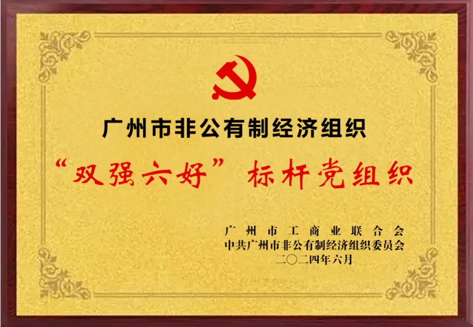 荣获广州市非公有制经济组织“双强六好”标杆党组织