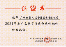 荣获广东省扶贫基金会颁发“广东扶贫济困红棉杯铜奖”